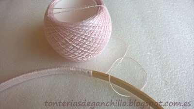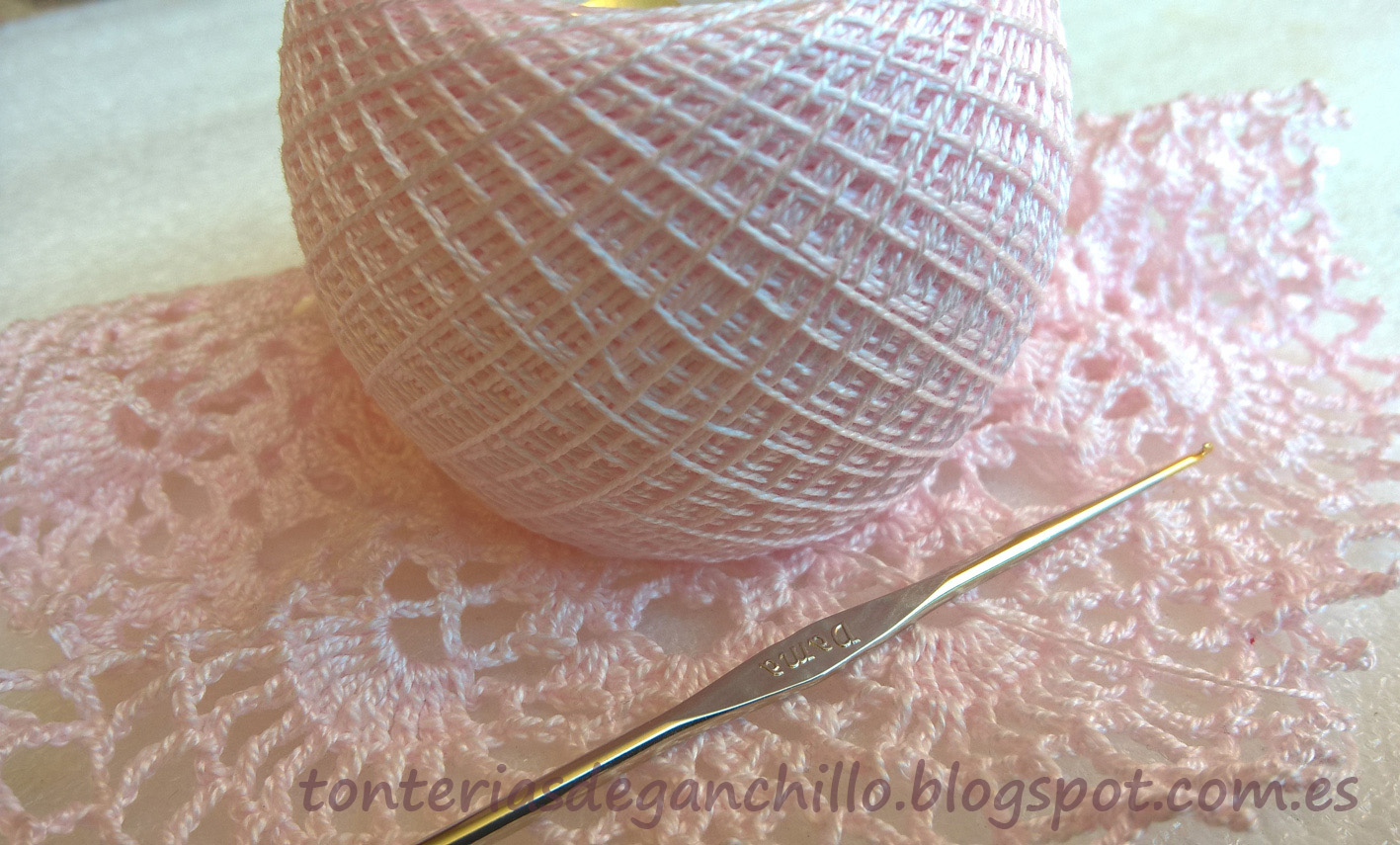 Lo que sí tenía muy claro desde el principio es que el hilo tenía que ser finito, este es hilo de algodón 100% "egipcio" de Hilaturas Presencia. Como es para la #subastarosa, el color no podía ser otro que rosa, eso sí, en un tono muy clarito.