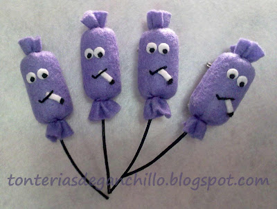 Le hacemos la cara dándole la expresión que queramos y lo terminamos con una hebra de pelo a modo de bufanda.